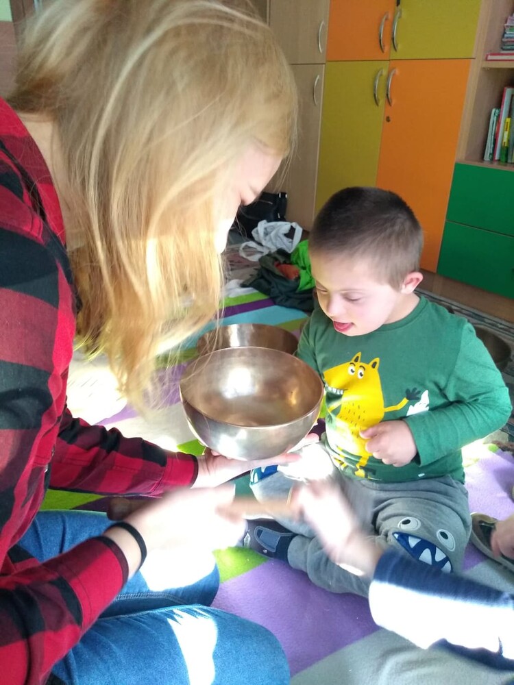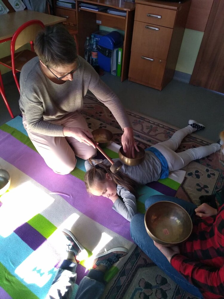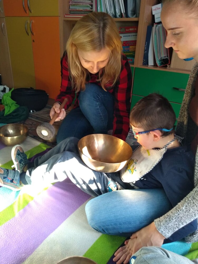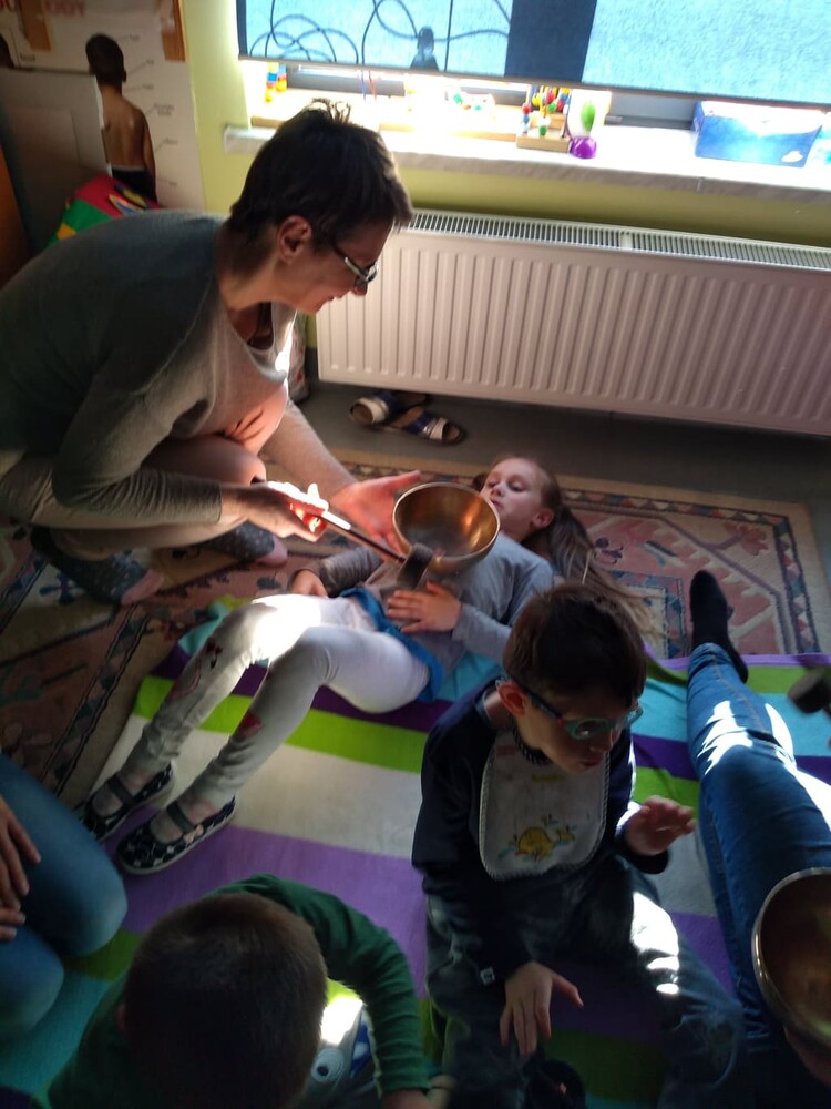 Zajęcia dźwiękoterapii - stymulowanie falami dźwiękowymi prowadzone przez panią Monikę Doroszkiewicz.