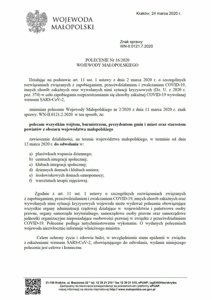Zarządzenie Wojewody Małopolskiego